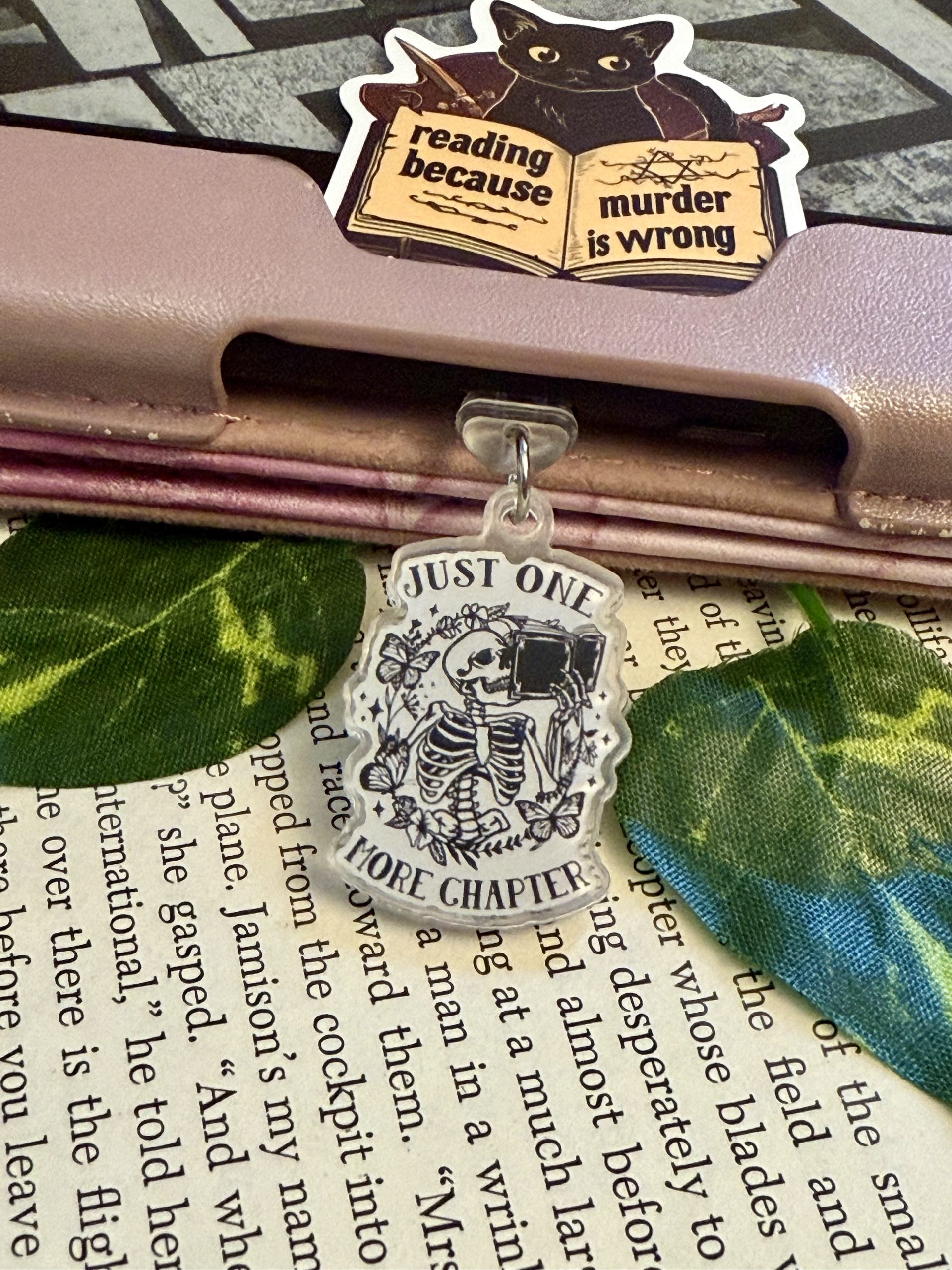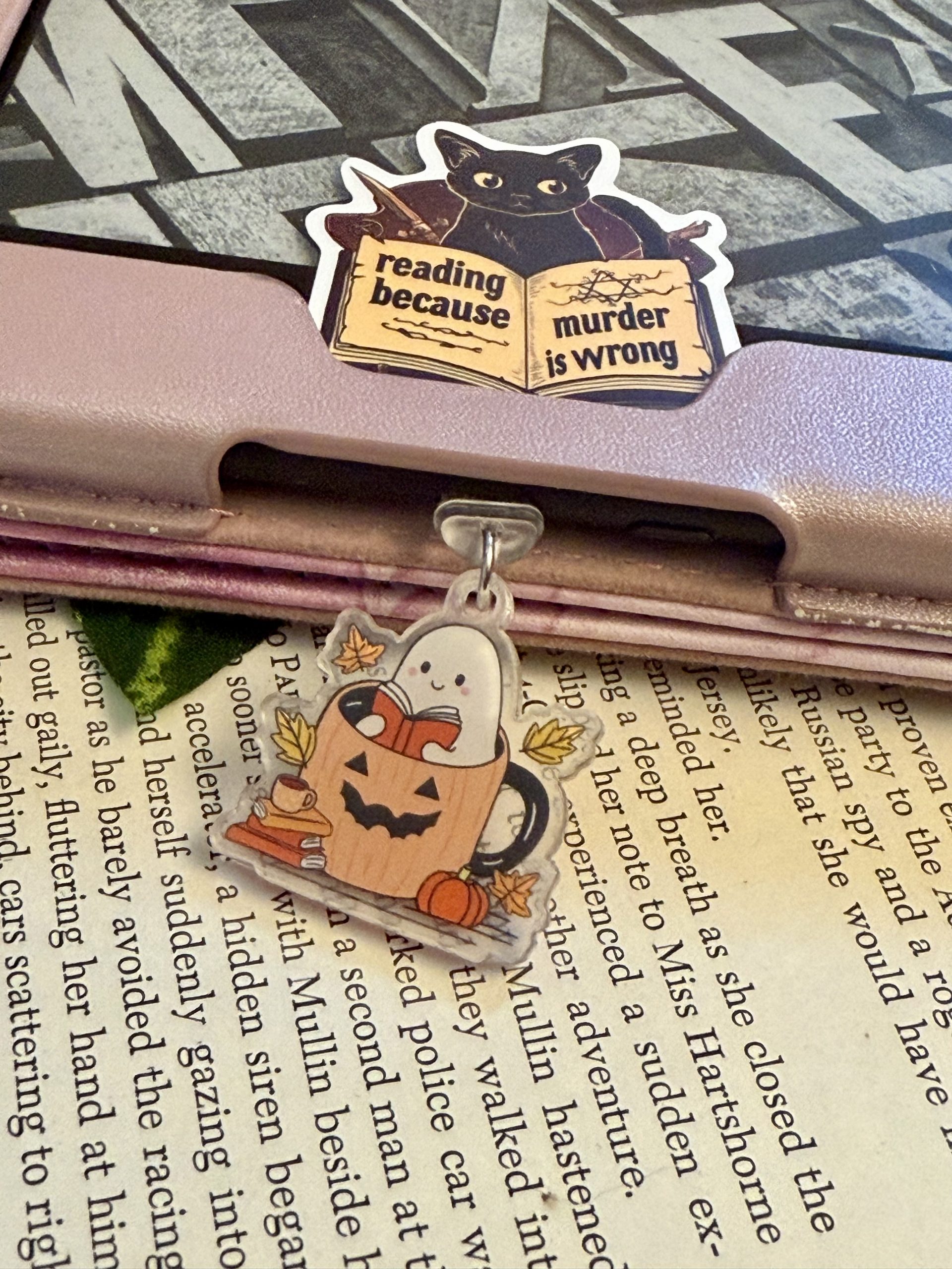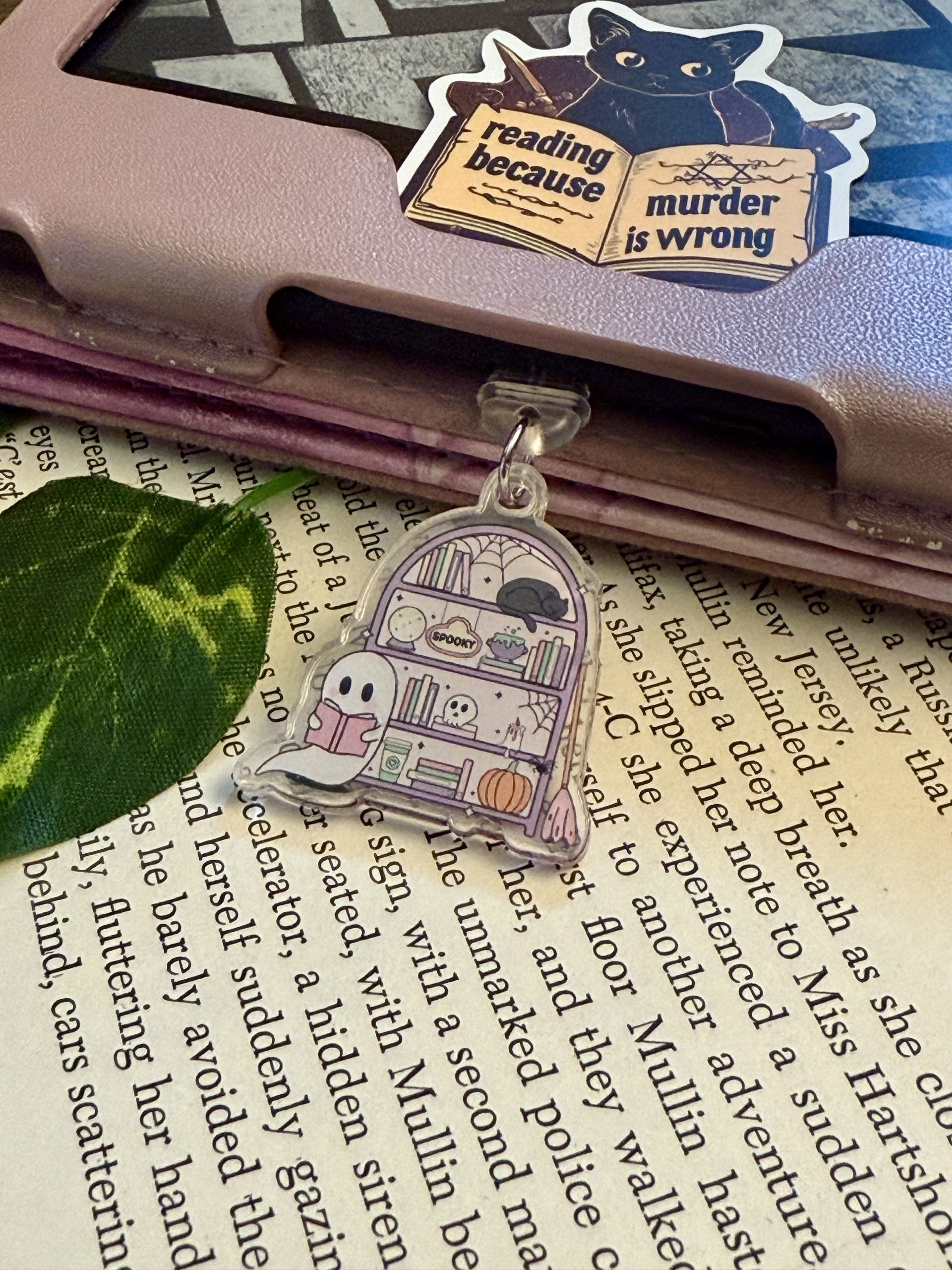 Bring a little haunted magic to your reading time with this spooky season e-reader charm! Perfect for bookworms who love cozy fall nights, creepy stories, and all things Halloween, this charm fits neatly into the charging port of any e-reader or phone. Lightweight and unobtrusive, it won’t get in the way of your reading adventures, but it will add a festive, spooky touch to your device. Made from durable resin and protected with a removable film, it’s the perfect accessory for readers who want to carry a little Halloween spirit with them on every page.